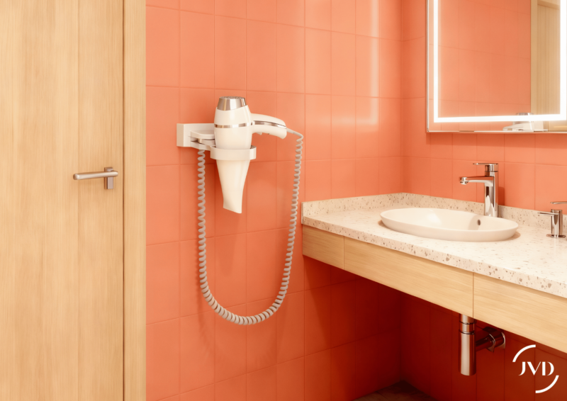 Haartrockner Alteo weiss 1875 W + Universalhalterung, vormontiert für einfache Installation, 180° drehbar.