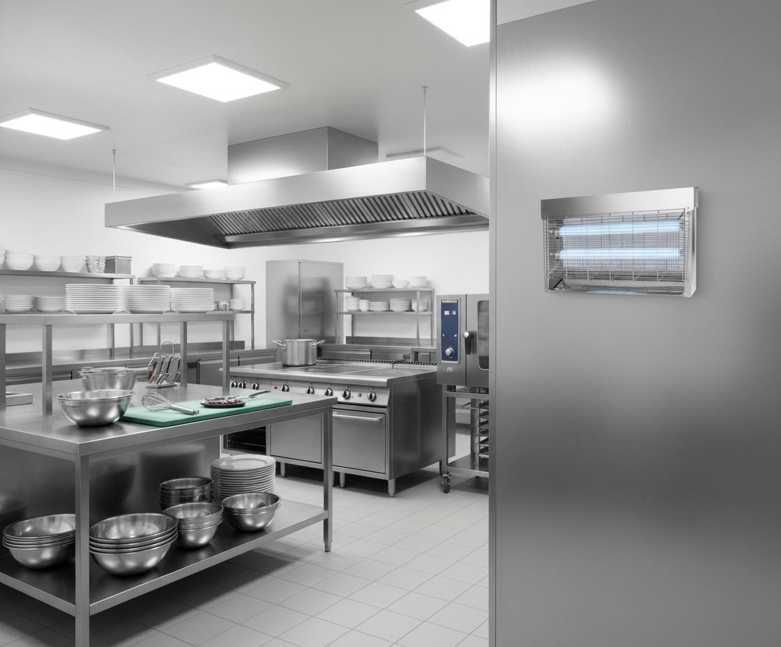 Elektrischer Insektenvernichter aus Edelstahl, der eine Fläche von bis zu 80 m2 abdeckt, zum Aufhängen. LED-Technologie mit 2 langlebigen 9W-Röhren, die bis zu 50% Energie sparen.