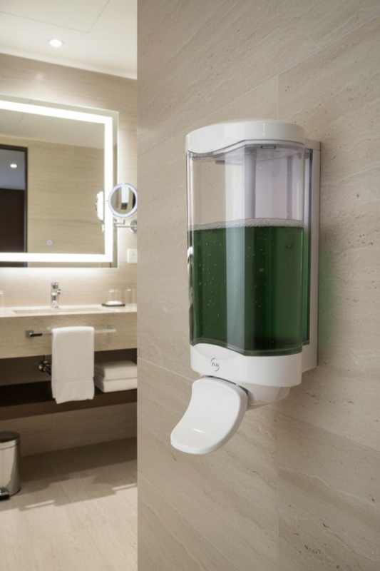 Seifenspender Crystal 1000 ml, transparent-weiss, mit Druckhebel. Langlebige Silikonpumpe. Spardosierung 1 ml pro Anwendung.