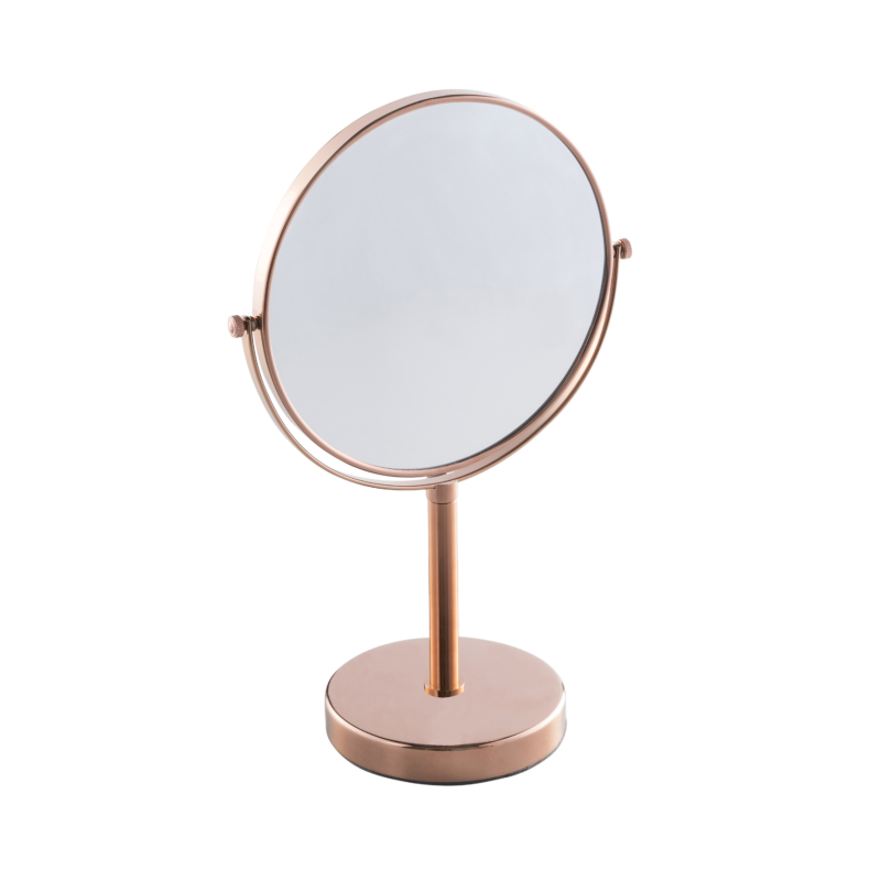 Doppelseitiger Kosmetikspiegel Fiesta, kupfer, mit Normalspiegel bzw. Dreifachvergrösserung. Mit Standfuss aus verkupfertem Messingrohrarm.
