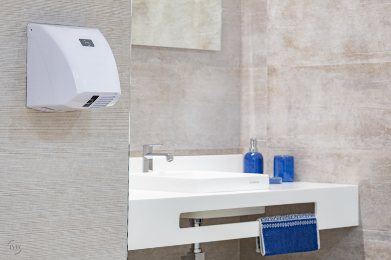 Händetrockner Zephyr weiß, Warmluft, automatische Sensorerkennung, vandalensicheres ABS-Kunststoffgehäuse (IK10), Personalisierung mit Kunden-Logo möglich. 3 Jahre Garantie
