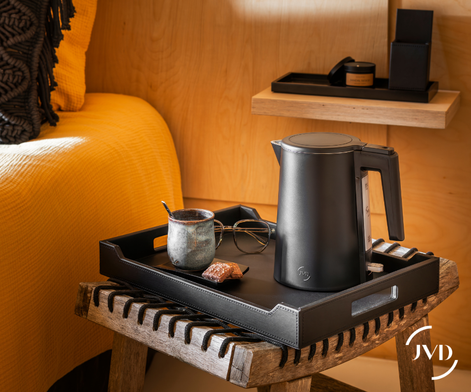 Divine kettle, matt black finish, 1L capacity, 100% double-walled 304 stainless steel interior.