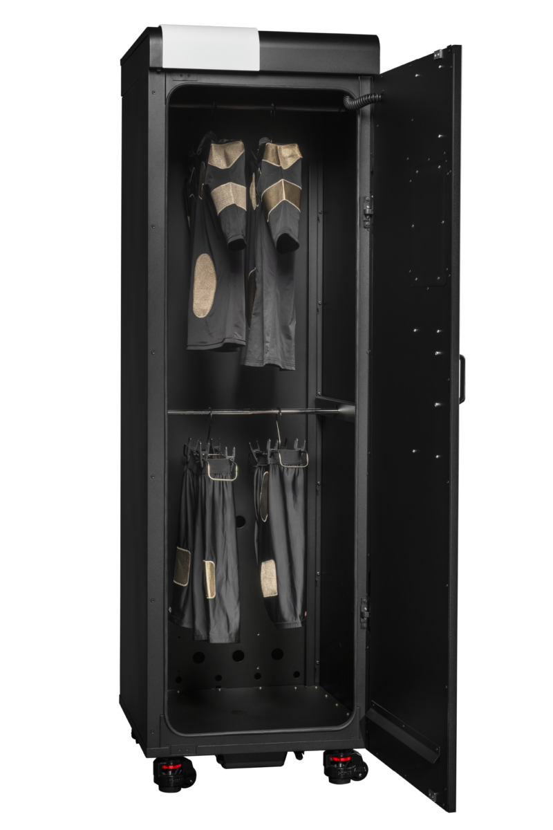 The Novven 3S Essential Pack cabinet has been specially designed to ensure the disinfection, drying, and deodorisation of EMS uniforms. Thanks to its patented Smart Air Care technology, it becomes a true daily ally for optimal maintenance, regardless of the generation of uniforms used.