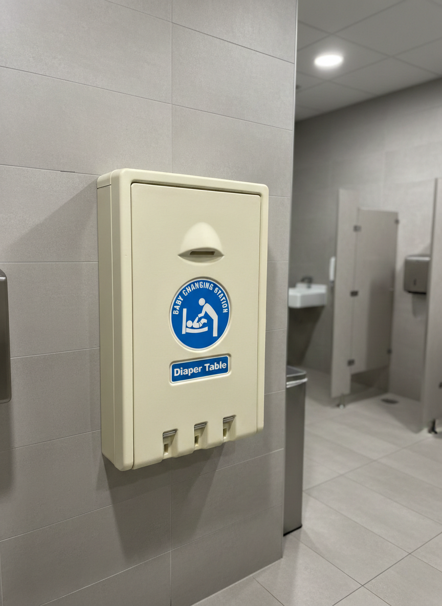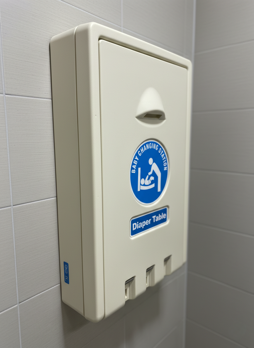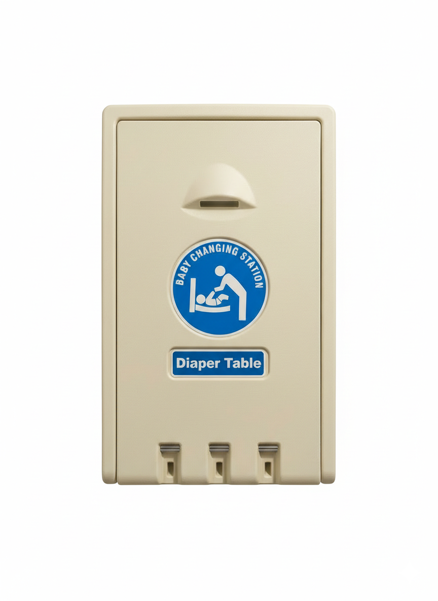Vertical diaper changer. Made of high quality polyethylene. With seat belt. Granulated surface.