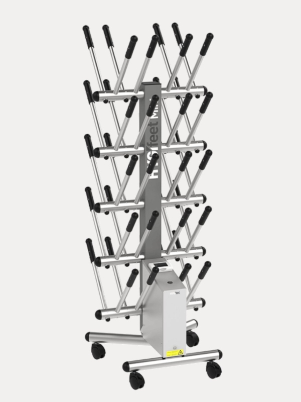 Zapatillas de cross-training usadas durante toda una sesión, calcetines técnicos guardados húmedos en una taquilla, accesorios de entrenamiento compartidos sin secado entre usuarios… la humedad siempre encuentra un lugar donde instalarse. Los olores persisten, los hongos proliferan y el riesgo de infecciones micóticas aumenta sesión tras sesión, a menudo de forma imperceptible.