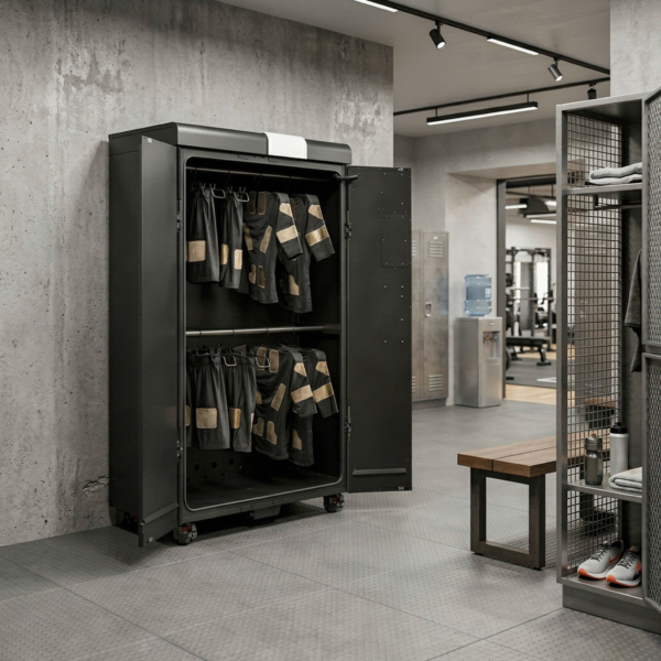Tras una hora de entrenamiento intensivo, el equipamiento no está simplemente «húmedo». Está cargado de sudor, calor residual y microorganismos; algo que no se soluciona con el simple hecho de dejarlos sobre un banco o dentro de una bolsa.