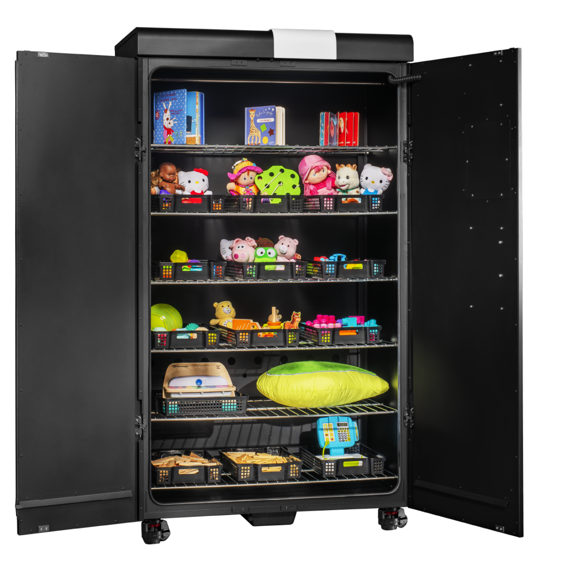 El armario Novven 3 PE está diseñado para la desinfección de juguetes y equipos de guardería. Su tecnología patentada Smart Air Care garantiza altos niveles de rendimiento para asegurar higiene y seguridad. Fácil de usar, ofrece trazabilidad, mantenimiento simplificado y soporte diario para los usuarios.