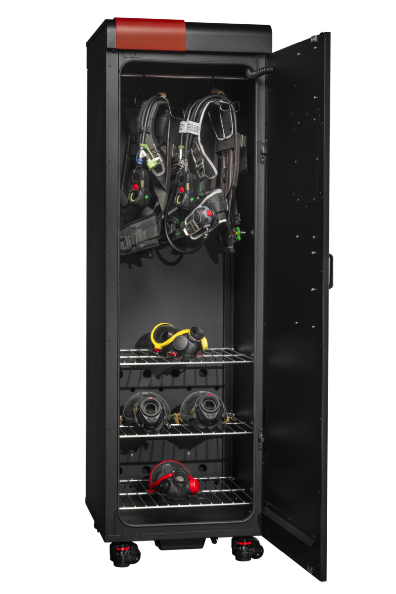 El armario Novven 3S DSS Pack de Equipamiento está diseñado para el secado eficaz de mascarillas autónomas (equipo respiratorio autónomo – ERA). Su tecnología patentada Smart Air Care asegura un secado completo protegiendo la integridad de las mascarillas. Fácil de usar, ofrece trazabilidad, mantenimiento simplificado y soporte diario para los usuarios.