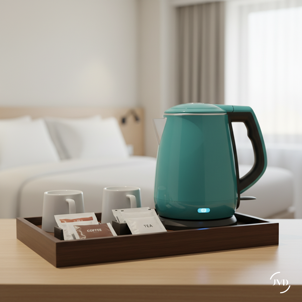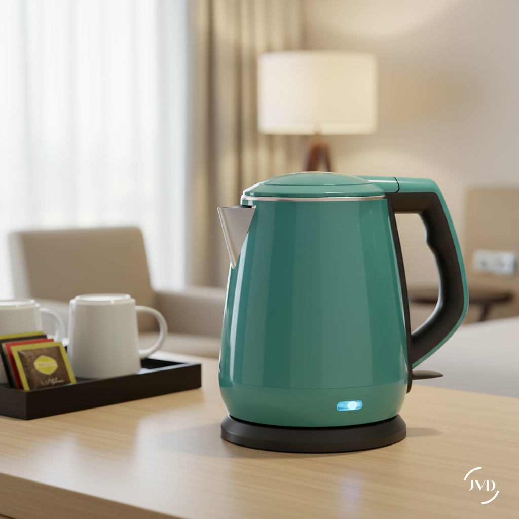 El hervidor Allure Azul Claro JVD combina elegancia relajante con rendimiento práctico, ideal para cualquier habitación de hotel. Con su cuerpo de doble carcasa cool-touch e interior de acero inoxidable SUS304, garantiza seguridad e higiene. El apagado automático lo hace fácil de mantener, intuitivo para los huéspedes y sin complicaciones para el personal. Su color azul claro aporta un toque moderno y sereno a los interiores hoteleros, creando un ambiente relajante.