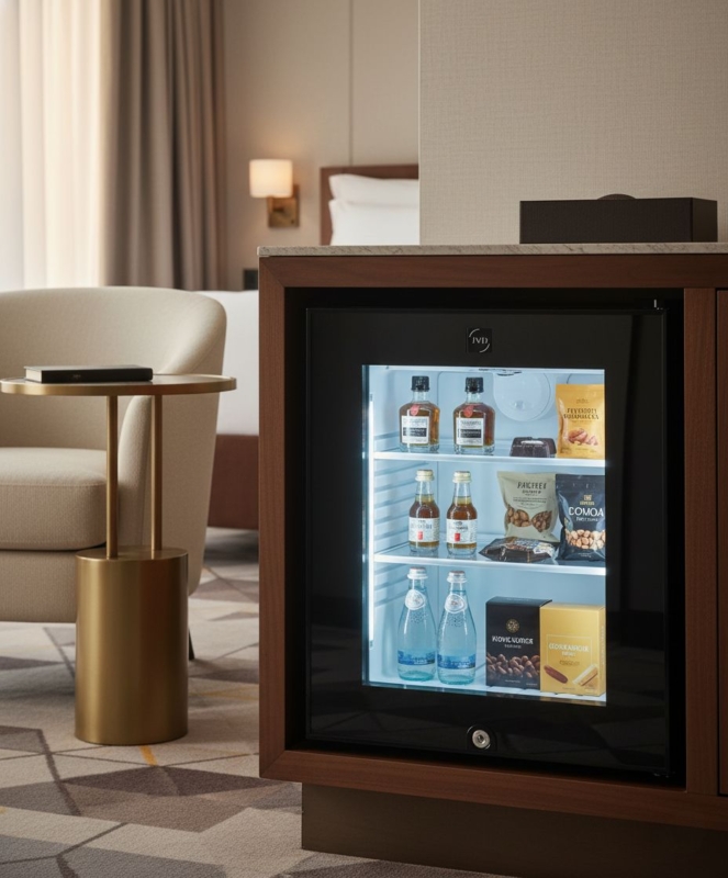 Fabricado sin gases de efecto invernadero (sin CFC) y con gas no tóxico e inodoro, este minibar reduce el consumo energético y contribuye a una hospitalidad más sostenible. Su tamaño compacto y su funcionamiento totalmente silencioso lo convierten en una solución ideal para hoteles que buscan eficiencia, estética y bienestar.