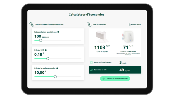 ¡Hasta 10 veces más económico que el papel! Descubre cuánto puedes ahorrar al cambiar a un secador de manos como Sup’air, orgullosamente fabricado en Francia.