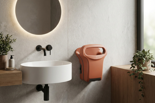 Pour accompagner les architectes et designers d’intérieur, cette collection a aussi été pensée comme un véritable outil de prescription : en proposant trois teintes actuelles (Terra Cota, Bleu Minéral, Vert Sauge), elle permet d’intégrer le sèche-mains directement dans la palette matières/couleurs du projet dès la phase plans et CCTP, au même titre que la robinetterie, les revêtements ou les accessoires. Résultat : un équipement technique qui ne vient plus “perturber” l’intention architecturale en fin de chantier, mais qui s’inscrit naturellement dans l’identité des lieux, avec une cohérence esthétique maîtrisée et sans compromis sur les exigences d’exploitation en sanitaires professionnels.