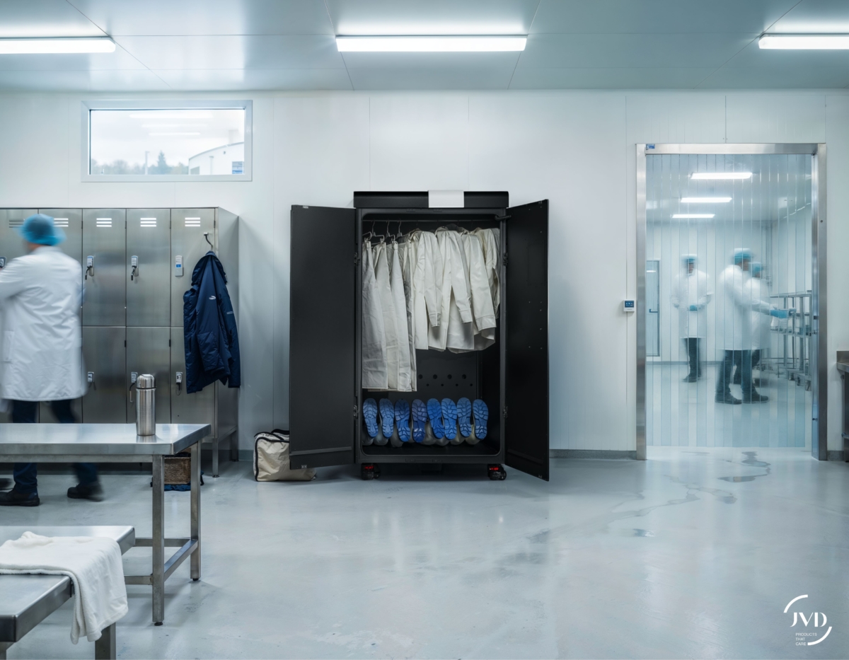 L’armoire Novven 3 Pack Équipement est conçue pour accueillir et désinfecter de petits équipements professionnels, comme brosses, seaux et autres accessoires utilisés en milieu industriel. Sa technologie brevetée Smart Air Care assure une désinfection efficace tout en préservant la durée de vie des équipements. Facile à utiliser, elle offre traçabilité, maintenance simplifiée et accompagne les utilisateurs au quotidien.