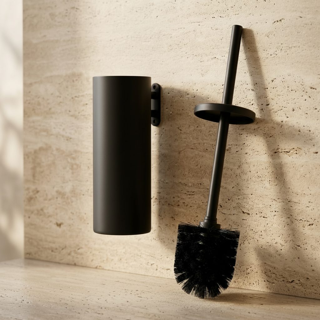 Brosse WC de remplacement en finition noire mat, conçue pour renouveler facilement votre équipement sanitaire sans changer l'ensemble du porte-brosse. La tige et l'embout sont intégralement noirs mats. Compatible avec le porte-brosse JVD réf. 8991136. Vendue sans porte-brosse. Idéale pour les environnements professionnels exigeant un entretien régulier des sanitaires.