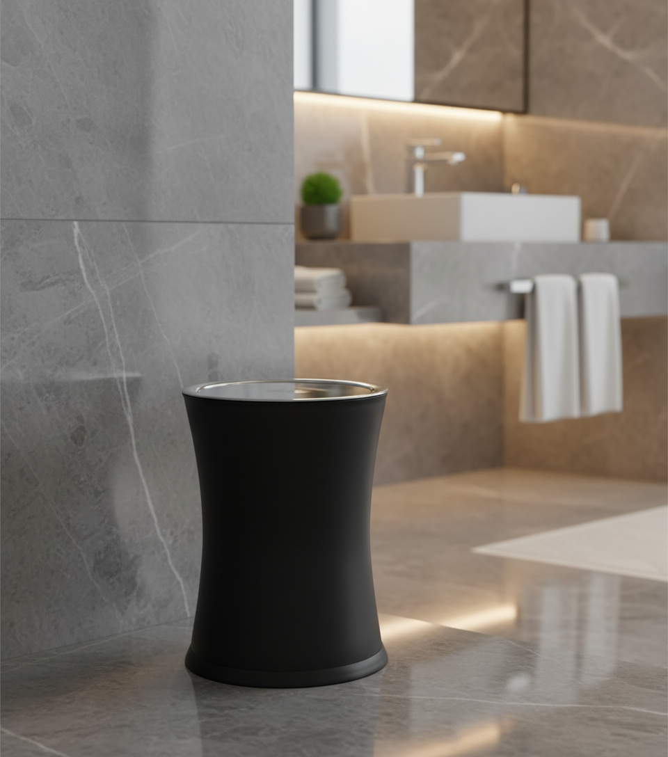 Corbeille design à couvercle basculant 8L. Protection caoutchouc à la base pour la prévention des rayures au sol