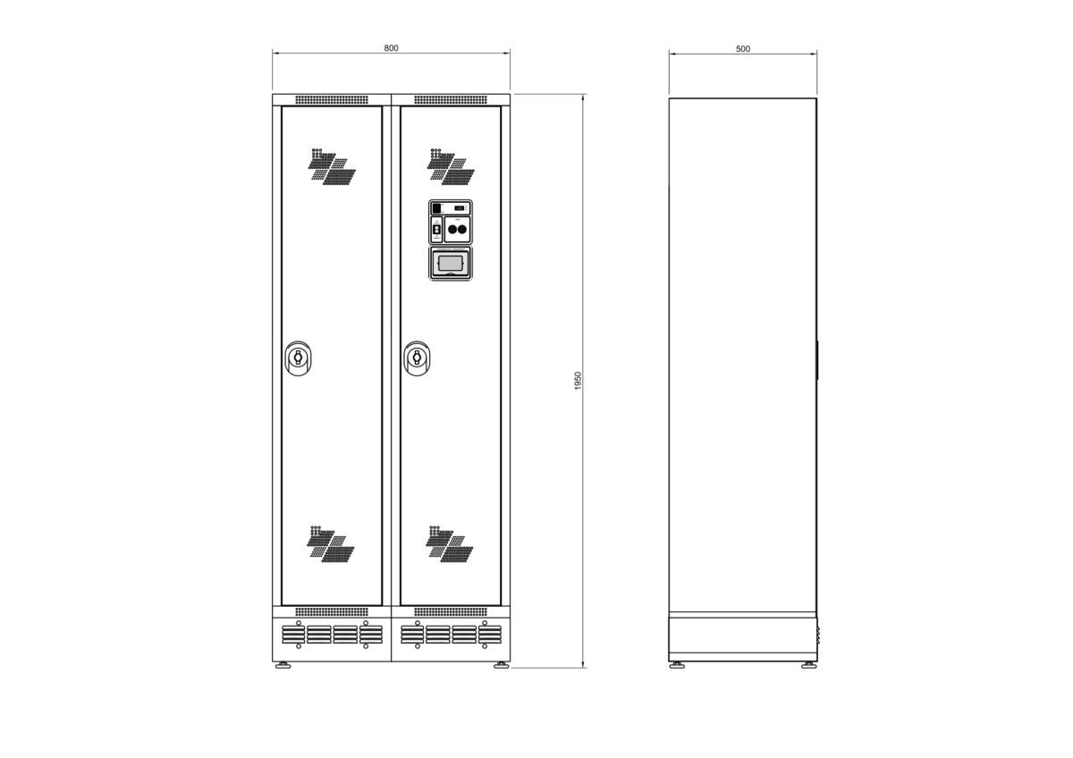 Bloc de 2 vestiaires séchants de 400 mm de largeur chacun, en acier époxy et inox AISI 304, assurant la séparation entre vêtements propres et sales. Ils garantissent stockage, séchage, désodorisation et désinfection des tenues et équipements pour une hygiène optimale.