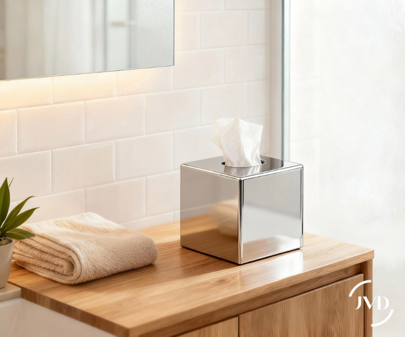 Sanibox - Distributeur carré pour boîte de mouchoirs en ABS finition chromé