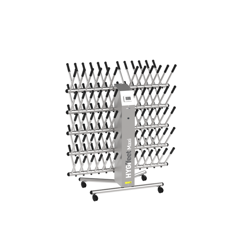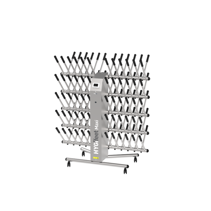 HYGIfeet, en inox 304L, est conçu pour l’entretien de tous les chaussants (bottes hautes et chaussures basses). Compact et mobile, il assure le séchage, la désinfection interne et la désodorisation.